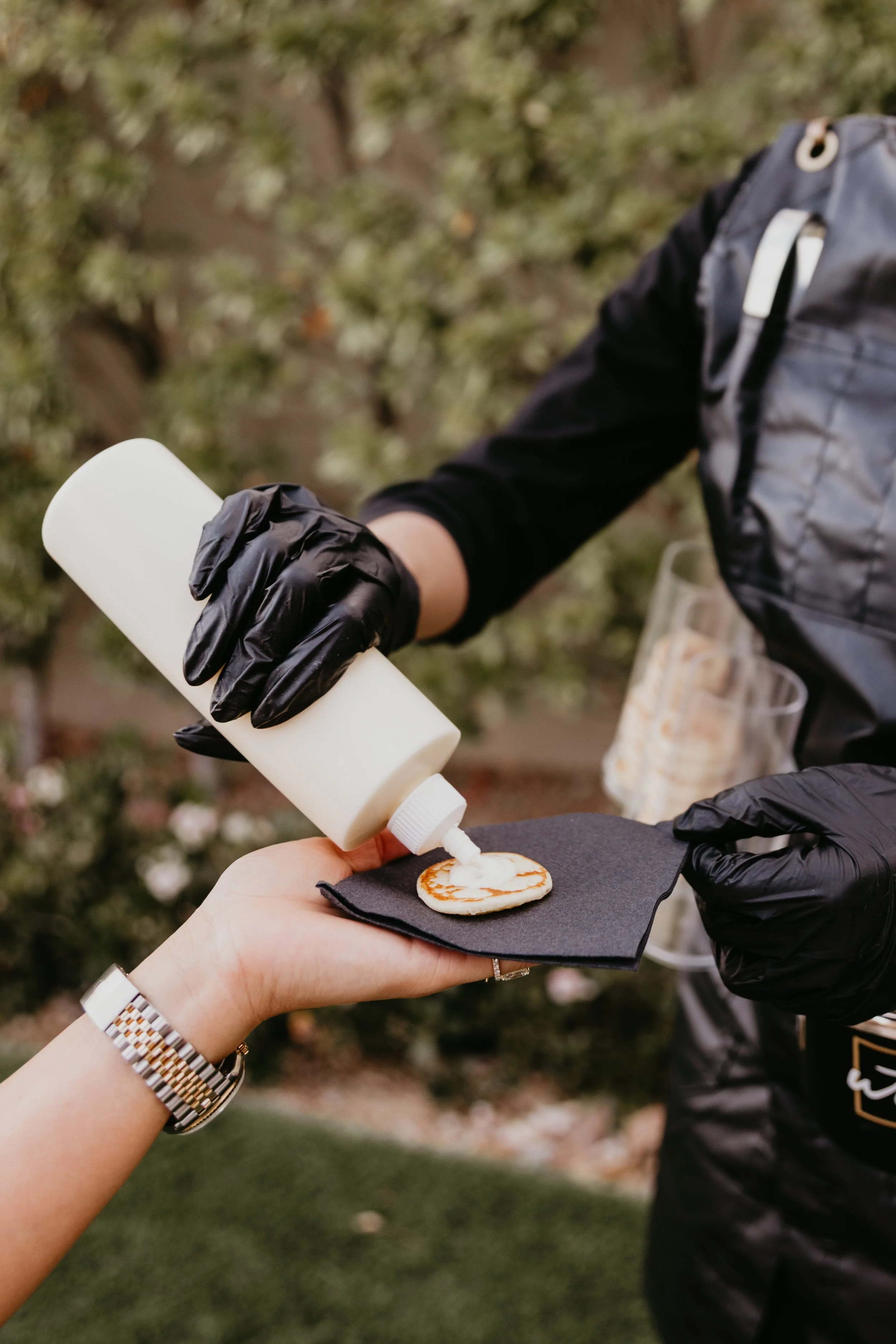 Delicious potato pancakes layered with Wagyu beef and truffle cream, crafted live in front of your guests.
